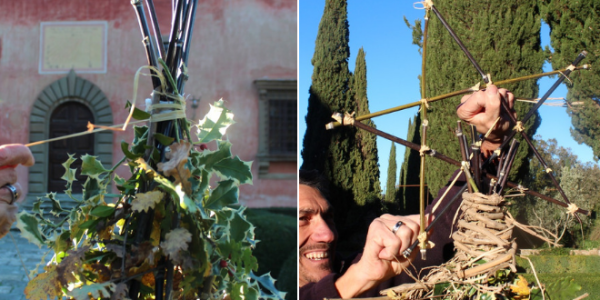 Christmas is around the corner, and as usual, we called upon Cristiano and Gilles to design our Christmas tree. They came up with a unique Christmas tree inspired by nature, made from material easily found while strolling around Vignamaggio. You can make this tree too, from what you find as you explore the fields and forests close to your where you live.