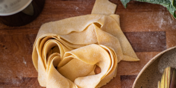 Lay the pappardelle to rest on a floured surface, making sure they don’t stick together.