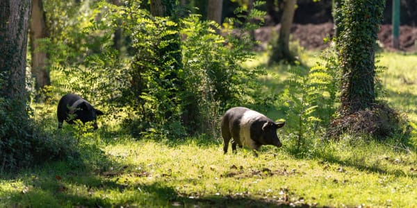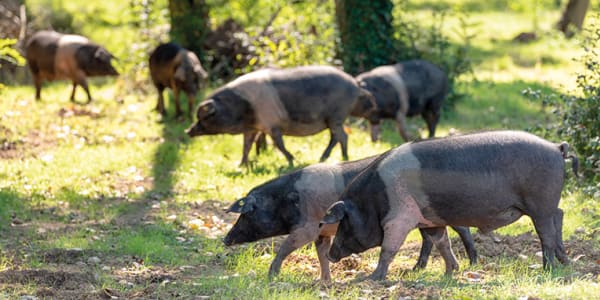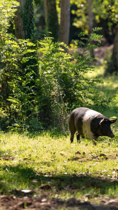 On the planes of Montagliari, you will often find piglets lazing about and scampering around the forest and pastures. The Cinta Senese pigs raised on the estate have 70 hectares of woodland at their disposal. They bathe in the ponds to cool off in the heat, sleep in the soft straw of their pen or run through the forest in search of acorns. Our preference is semi-free-range farming, which guarantees our Cinta Senese pigs maximum freedom, but also the security of always having water, food and a warm place where, at their discretion, they can spend the coldest days of the year.