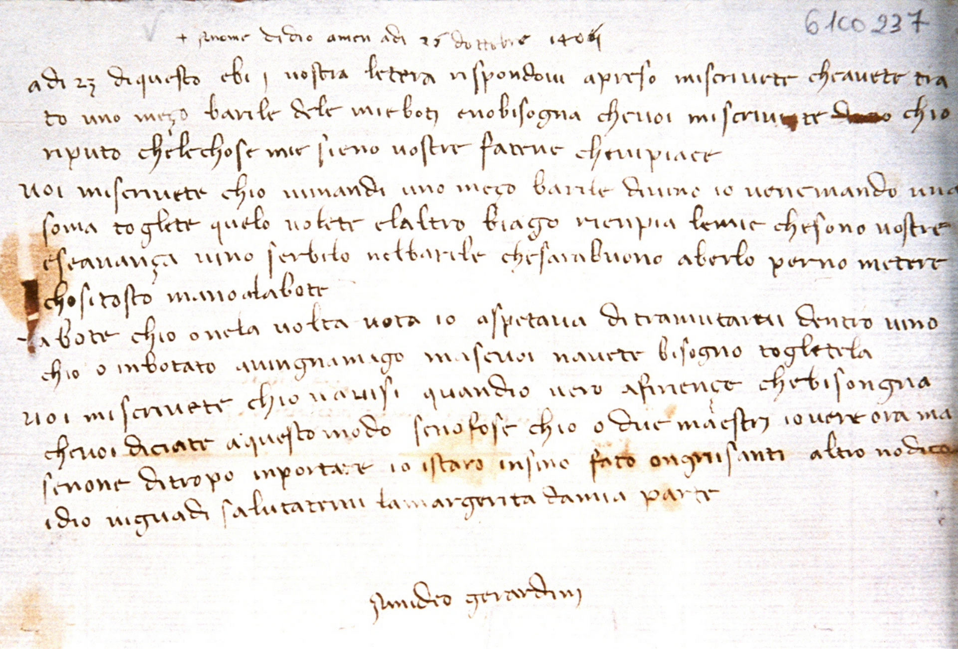 The first document providing evidence of winemaking at Vignamaggio is drawn up. The 1404 parchment of Amidio Gherardini (one of Cione’s sons) provides a symbolic tribute to the history of Vignamaggio’s long winemaking journey that began more than 600 years ago.
