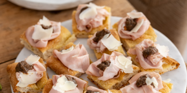 Lato destro: Paté di funghi Vignamaggio + Mortadella + pecorino di Pienza