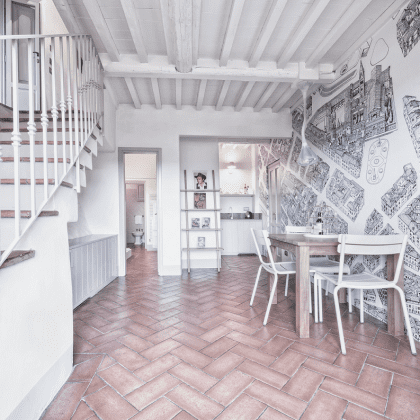 “La camera 10, sopra la chiesetta, con il soppalco ed una novella provocatoriamente scelta ad hoc. Si capisce dalla croce sulla finestra che prima era parte della chiesa! Ha una sua storia misteriosa che si percepisce e abbiamo deciso di inserire qui una novella un po’ dissacrante e sicuramente in tema: Giornata Terza, Novella Ottava.”
