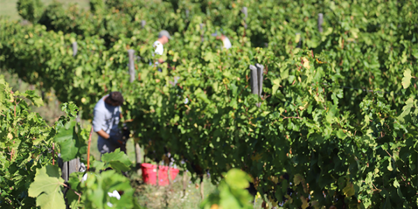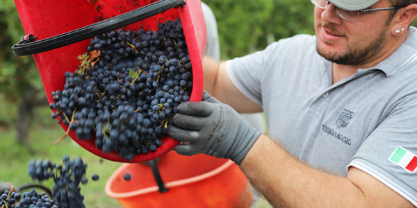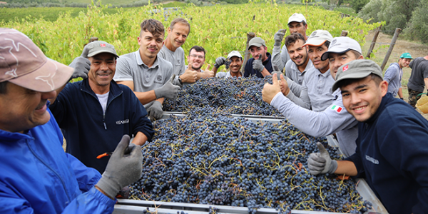 La nostra squadra multietnica ha cominciato con il Merlot, che è sempre il primo vitigno ad arrivare a maturazione. Grazie alla forte escursione termica tra giorno e notte di tutto il mese di settembre, la maturazione è avvenuta in maniera graduale e completa, senza arresti: i chicchi erano perfetti e senza sintomi di carenza idrica. Il 19 settembre una pioggia abbastanza consistente ha fatto sospendere le operazioni, che però hanno ripreso subito dopo, grazie ai terreni inerbiti e ben drenanti.