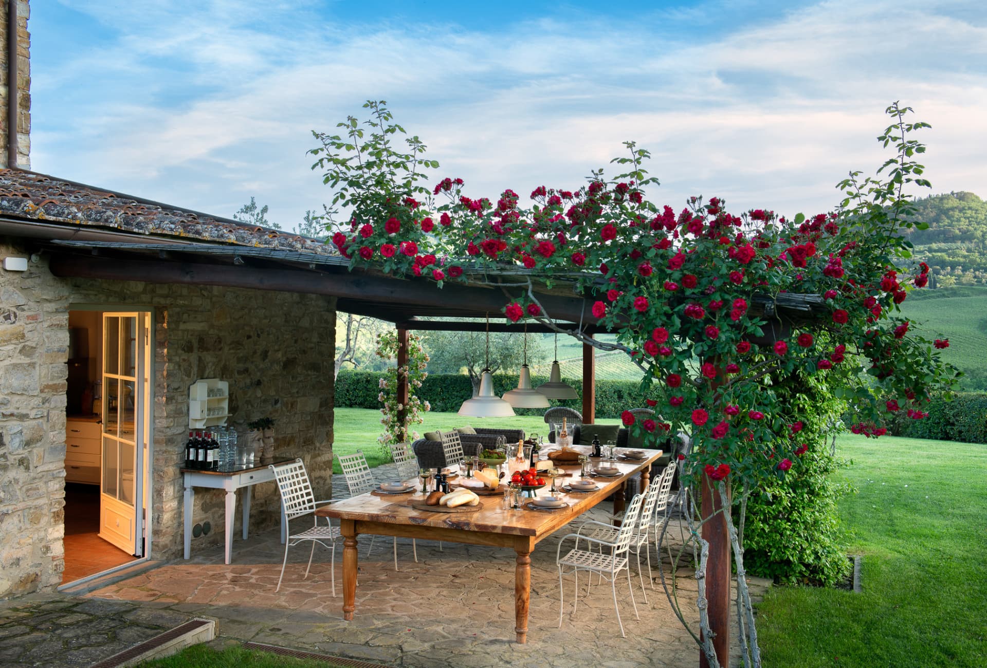In una radura che si apre tra boschi di querce e distese di vigneti, Il Prato di Vignamaggio è un angolo di pace, caratterizzato da uno stile classico ed elegante, circondato da un rigoglioso giardino punteggiato di alberi da frutto e rose.