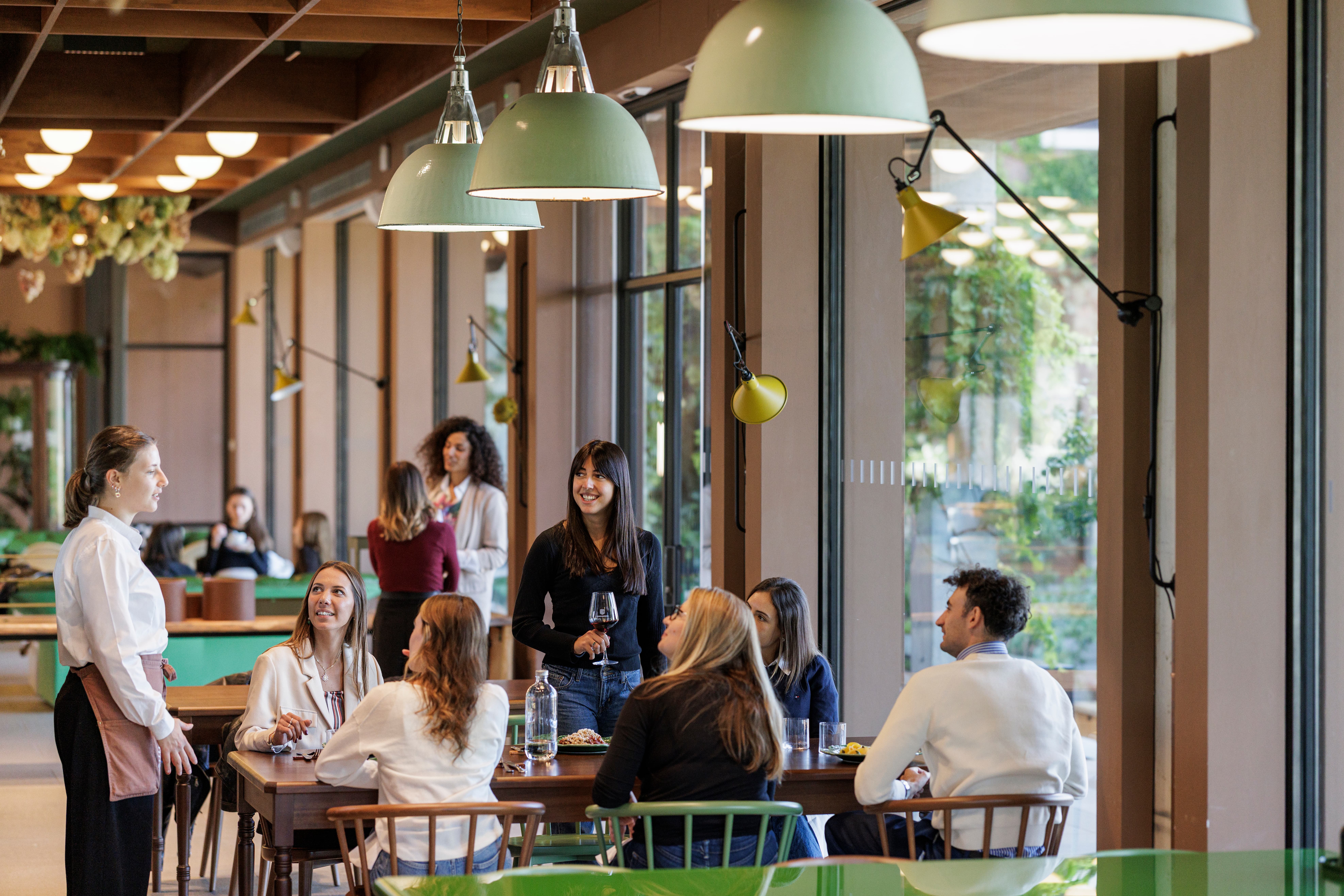 Il Ristoro è immerso in una cornice idilliaca e offre viste panoramiche mozzafiato, che abbracciano tutta la tenuta. Gli spazi interni ed esterni si confondono in una grande terrazza vetrata che offre scorci pittoreschi sulle colline ricoperte da vigneti, piccoli pascoli e frutteti, in un'atmosfera di serenità senza tempo.
