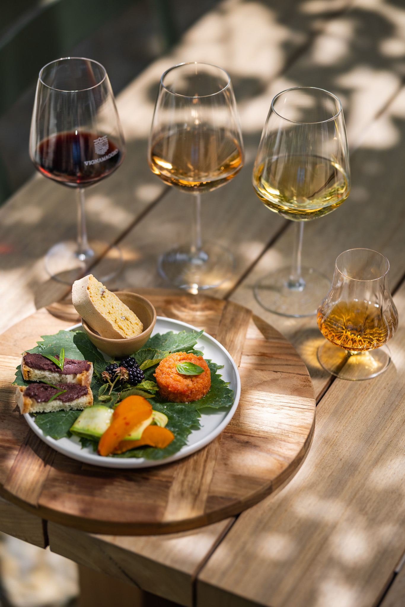Un percorso sensoriale attraverso quattro vini eterogenei – Tramonte, Albaluce, Mezzanotte e Vinsanto – ciascuno abbinato ad un assaggio gourmet studiato per esaltarne le caratteristiche.