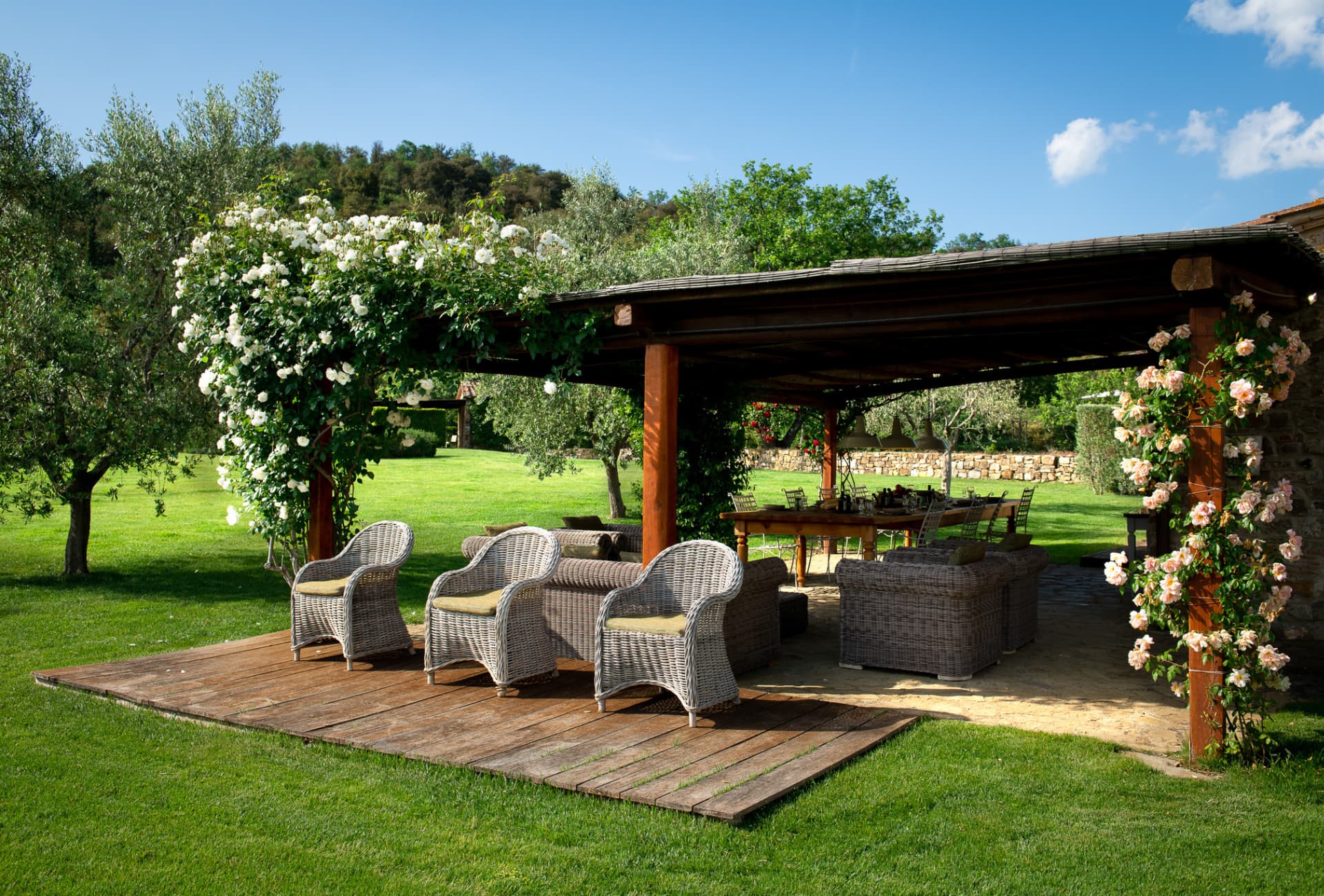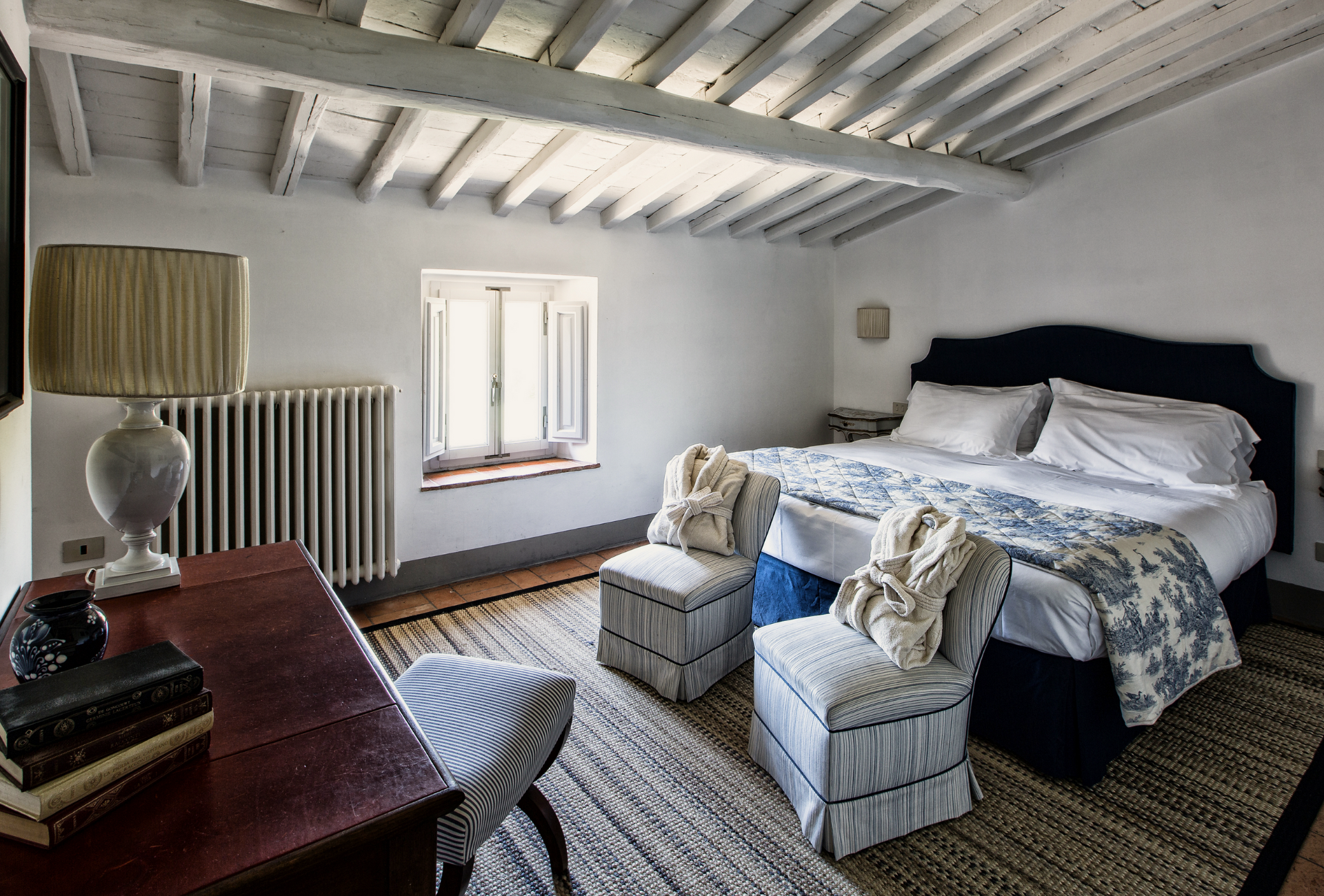 Nestled in a clearing between rolling vineyards and centuries-old oak trees, Il Prato di Vignamaggio is a peaceful retreat defined by a classic and elegant country style, surrounded by a lush garden dotted with fruit trees and roses.