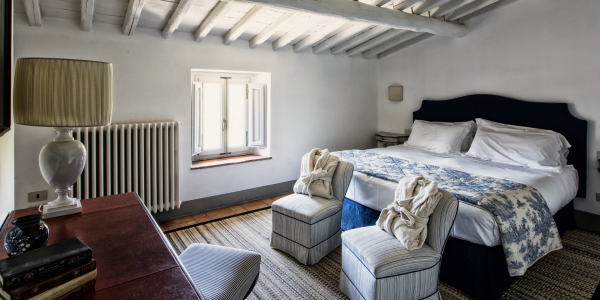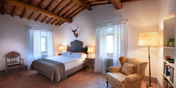 Nestled in a clearing between rolling vineyards and centuries-old oak trees, Il Prato di Vignamaggio is a peaceful retreat defined by a classic and elegant country style, surrounded by a lush garden dotted with fruit trees and roses.