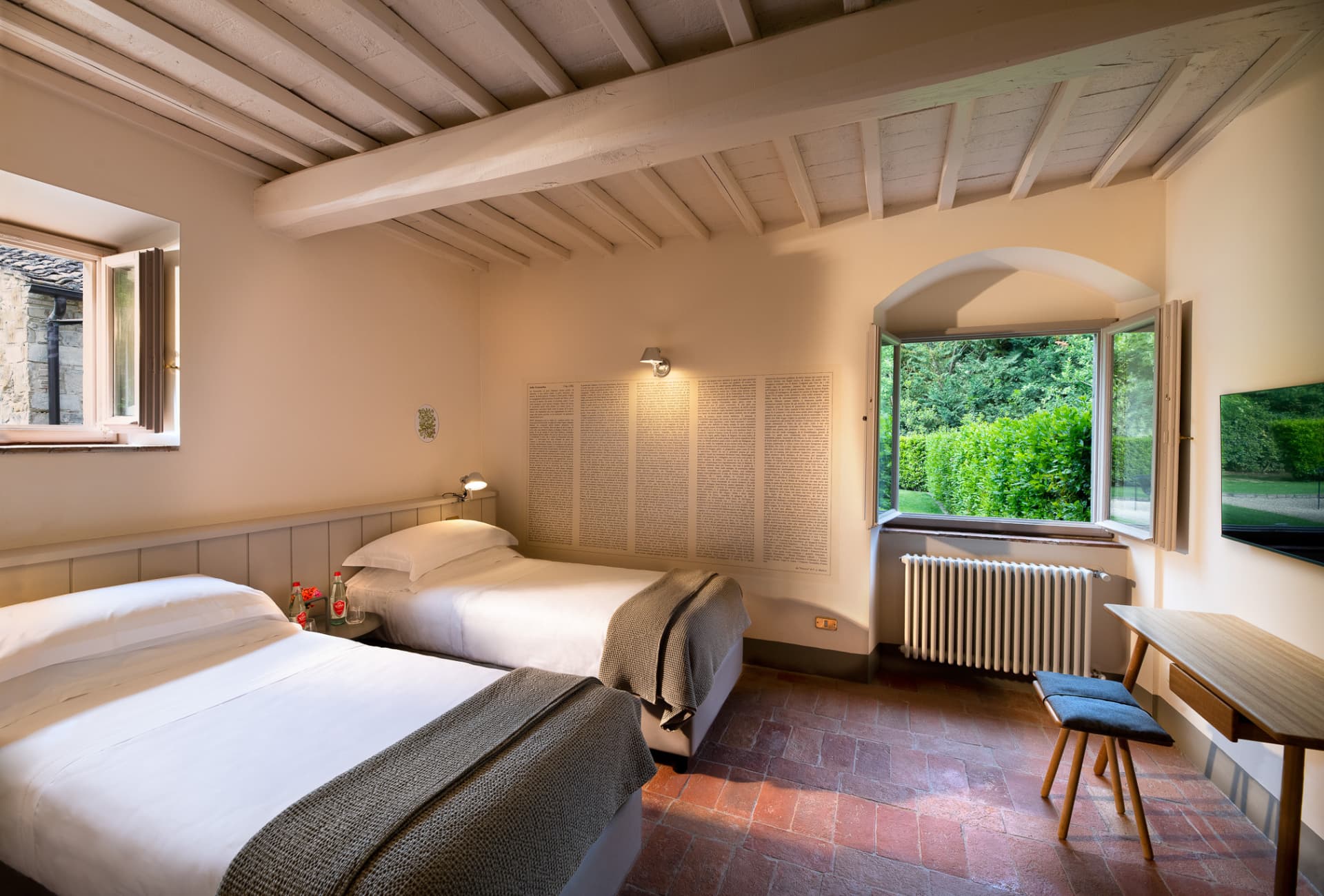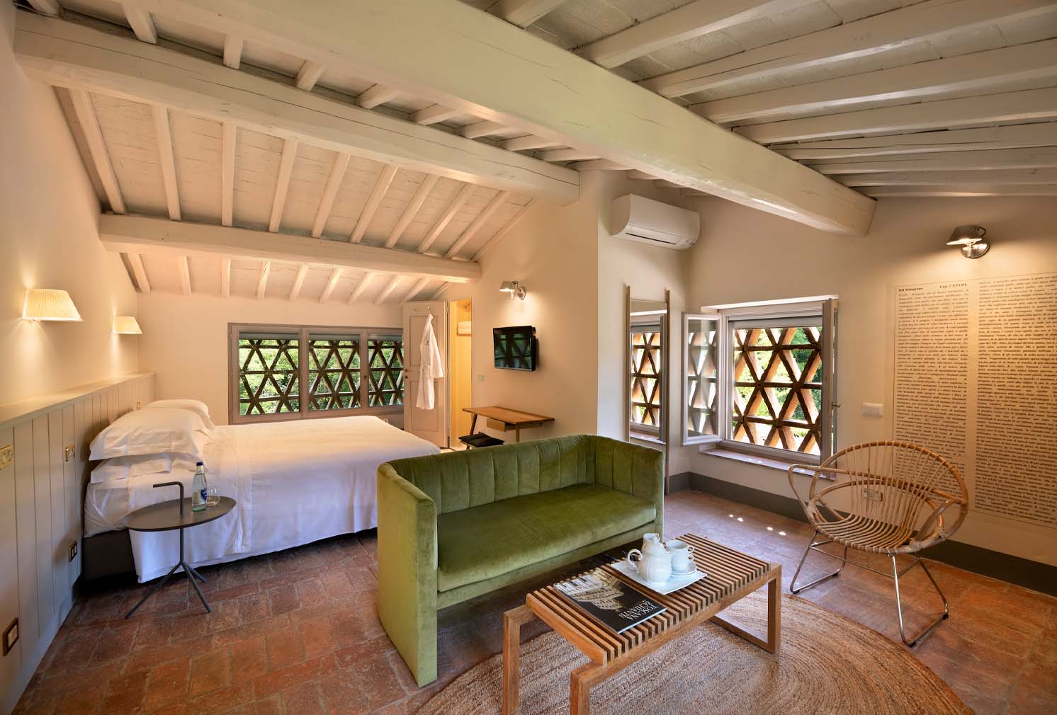 In the heart of the estate, on the banks of the peaceful Greve River, lies L’Orto di Vignamaggio, a homestead immersed in nature, available for weekly rentals. Surrounded by a lush, natural garden, the little stone hamlet is ideal for families and groups of friends wanting the tranquillity of the countryside, and complete privacy.