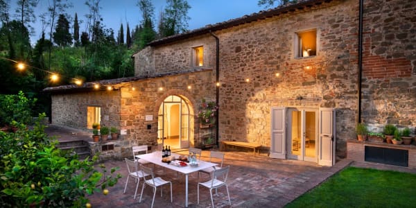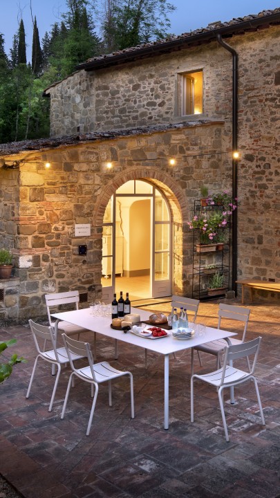 In the heart of the estate, on the banks of the peaceful Greve River, lies L’Orto di Vignamaggio, a homestead immersed in nature, available for weekly rentals. Surrounded by a lush, natural garden, the little stone hamlet is ideal for families and groups of friends wanting the tranquillity of the countryside, and complete privacy.