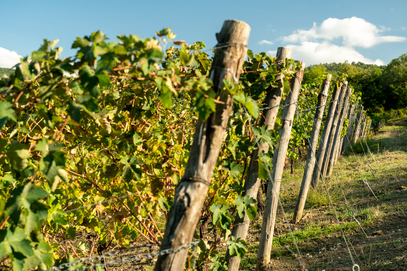 This area is in Vignamaggio’s historical nucleus, a rocky and not very fertile terrain, with more clay content than the previous areas. The Sangiovese in this area, also characterised by an intense luminosity (especially in summer), produces a concentration of polyphenols during maturation. The grapes for the Gran Selezione are usually from here and from the lower areas. For the most recent plantings, predominantly young clones with sparse bunches and small berries with a greater skin–pulp ratio were used. The vineyards are between 2 & 24 years old. In this area, a terraced vineyard with traditional cavalcapoggio rows was created. From a plot in this large vineyard, where the vines are about 25 years old, hails the Vignamaggio Cabernet Franc, the first in our territorial single-variety range.