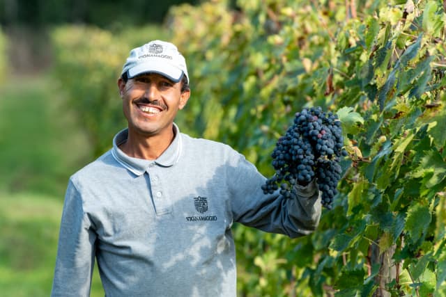 This area is in Vignamaggio’s historical nucleus, a rocky and not very fertile terrain, with more clay content than the previous areas. The Sangiovese in this area, also characterised by an intense luminosity (especially in summer), produces a concentration of polyphenols during maturation. The grapes for the Gran Selezione are usually from here and from the lower areas. For the most recent plantings, predominantly young clones with sparse bunches and small berries with a greater skin–pulp ratio were used. The vineyards are between 2 & 24 years old. In this area, a terraced vineyard with traditional cavalcapoggio rows was created. From a plot in this large vineyard, where the vines are about 25 years old, hails the Vignamaggio Cabernet Franc, the first in our territorial single-variety range.